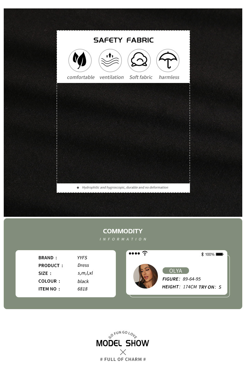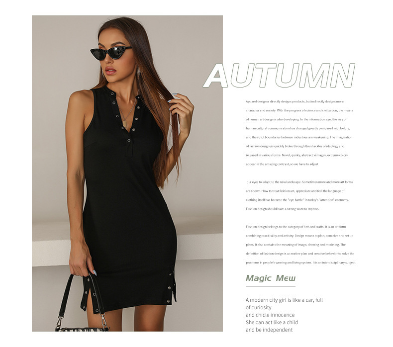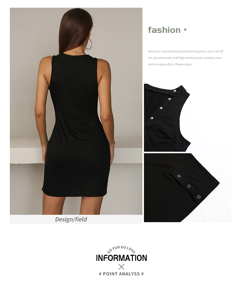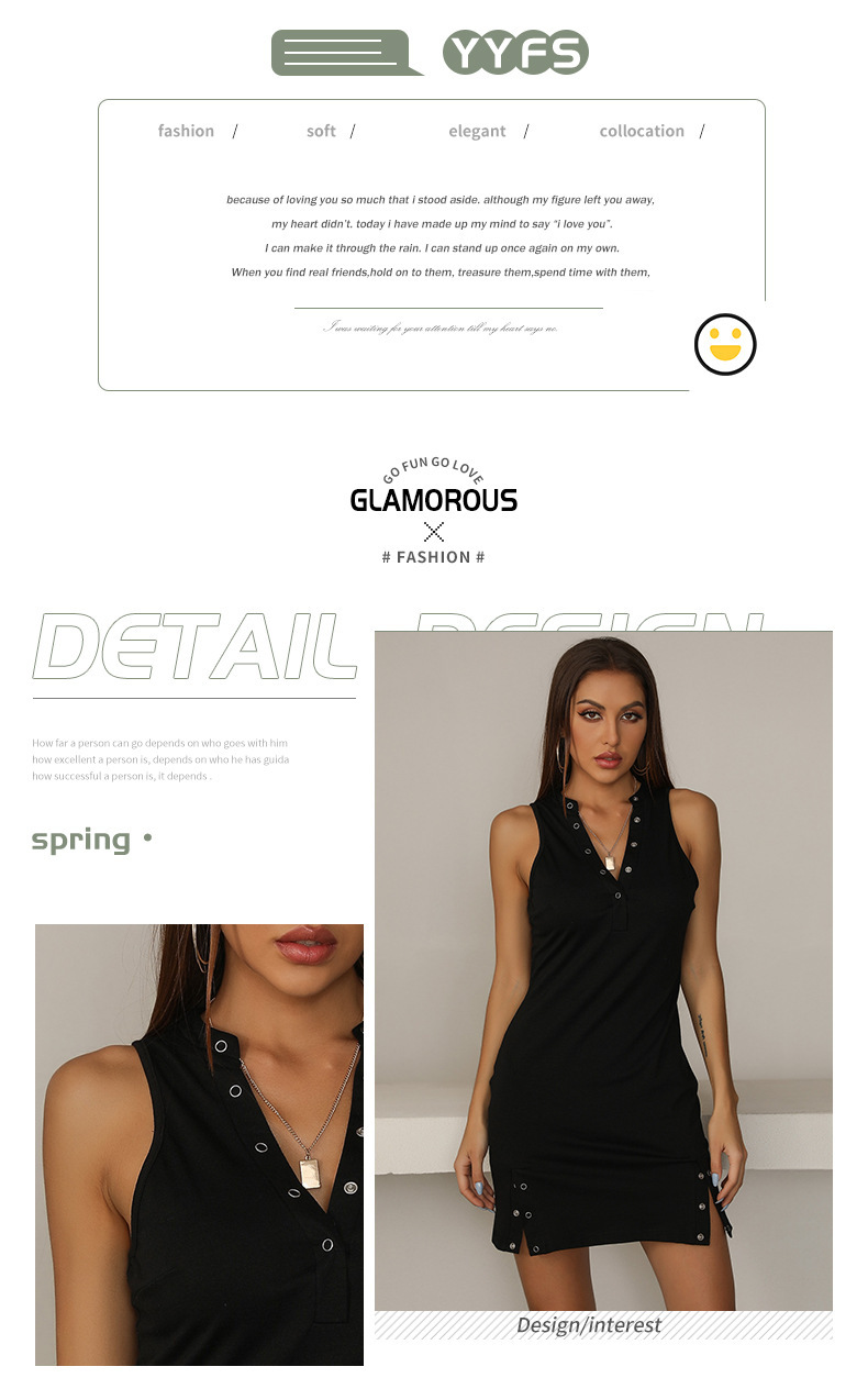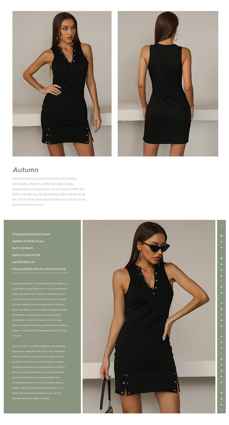 Solid-color Sheath Skirt, V-neck Sleeveless Vest, Black Dress